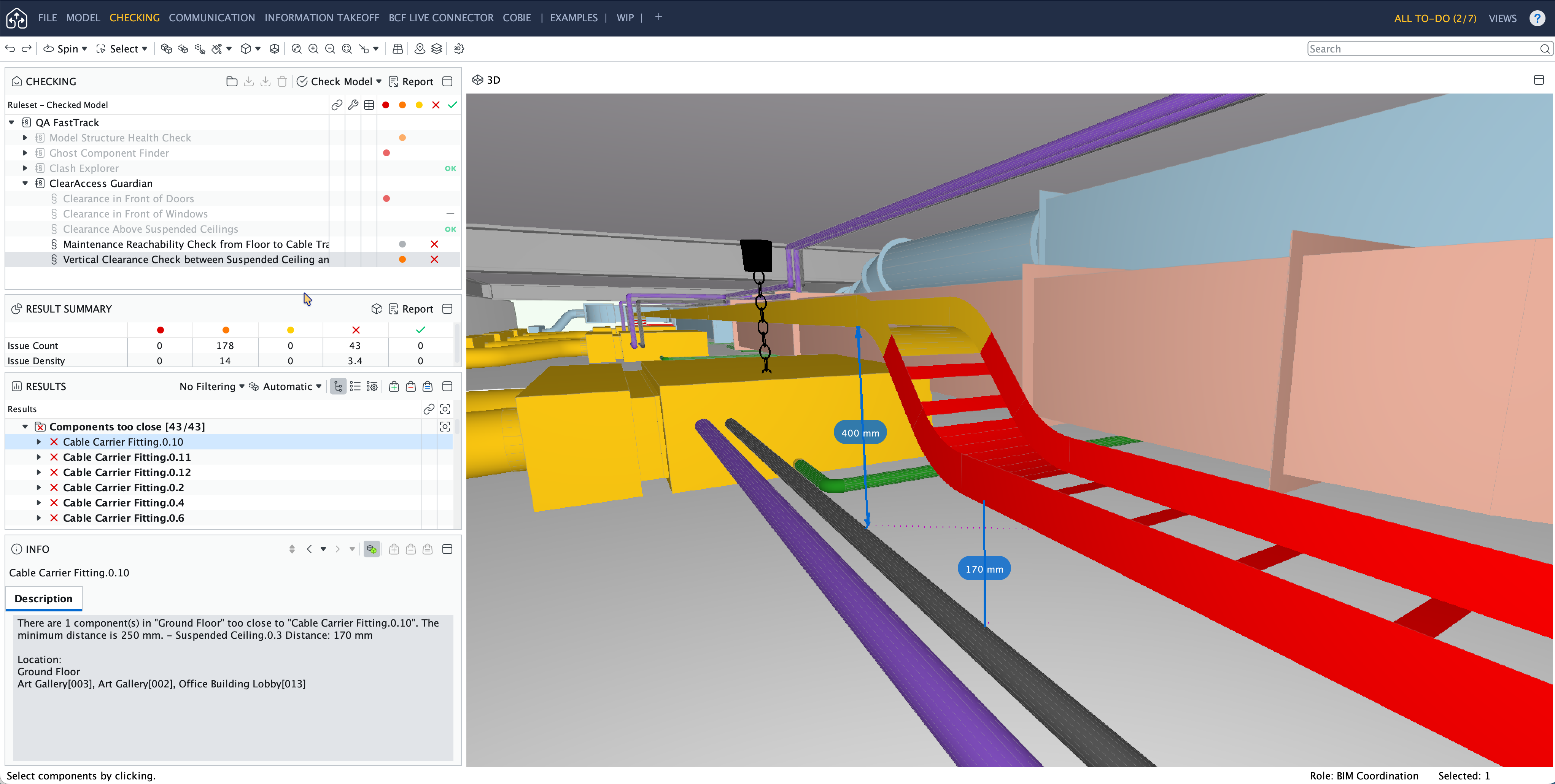 Melhor ainda, o modelo oferece uma maneira tridimensional de demonstrar à autoridade competente que o projeto está em conformidade com as normas locais. As autoridades competentes solicitam cada vez mais visualizações baseadas em BIM, como cortes transversais em 3D. O modelo validado torna o processo de conformidade mais rápido e fácil.